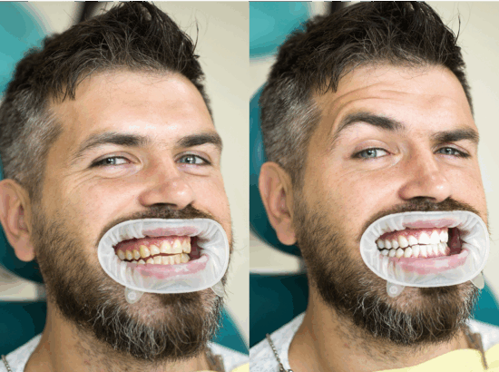 We start with a short consultation to ensure you’re a great fit for whitening. Then we prep your teeth, apply our medical-grade whitening gel, and activate it using a gentle LED blue light. The entire process takes about 45–60 minutes and is designed for both comfort and results. You’ll walk out with a visibly whiter, brighter smile, and the confidence that comes with it.